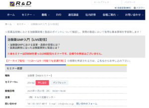 2025年11月27日(木)にZoom配信で、治験薬GMPについての入門セミナーを開催します。医薬品の治験における様々な留意事項について、GCP省令・GCPガイダンス・治験薬GMP等の内容と共にご紹介します。<講師からの […]